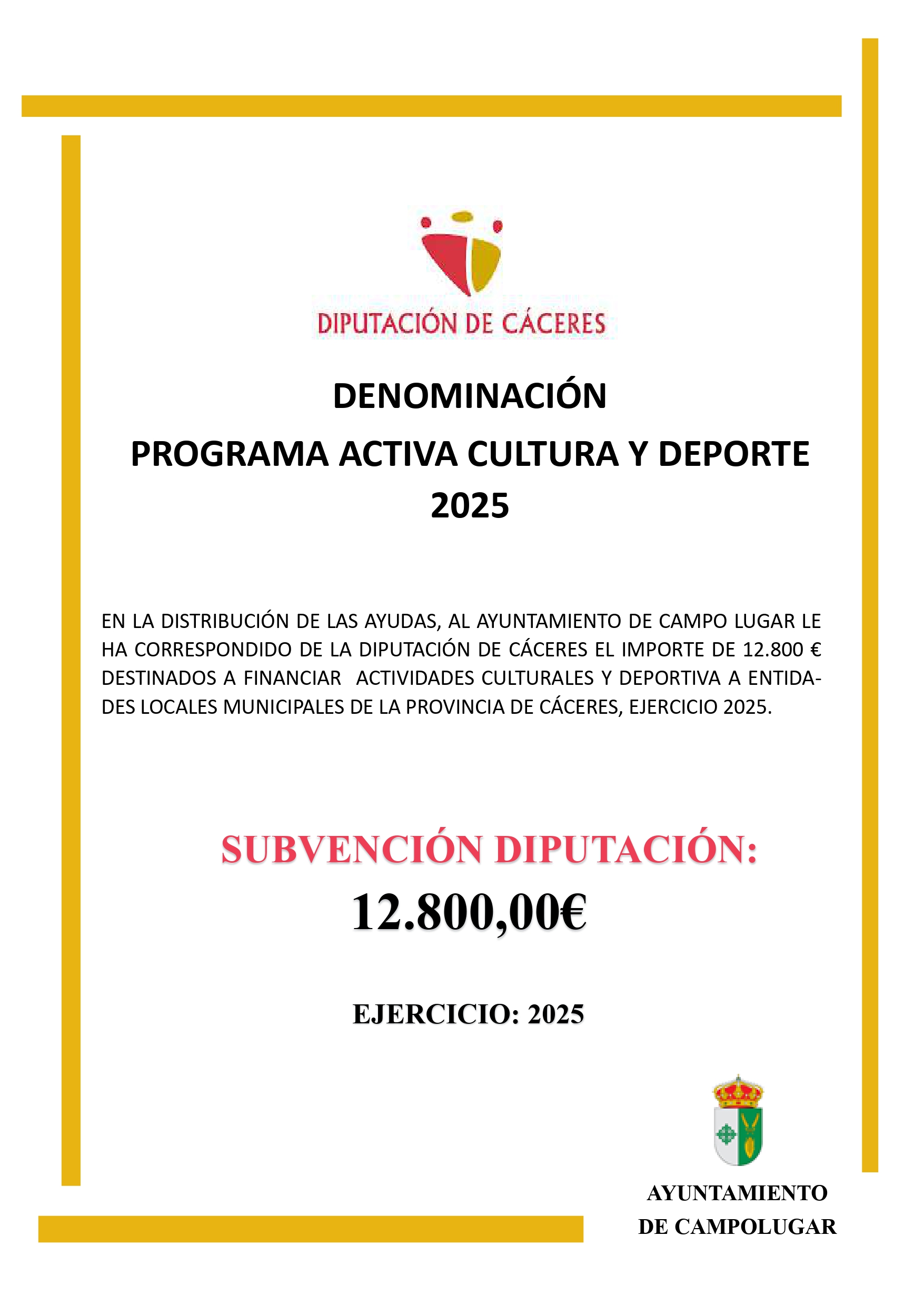 SUBVENCIONES - PROGRAMA ACTIVA CULTURA Y DEPORTE 2025 10 abril 2025 Galería imágenes Documentos PUBLICIDAD SUBV. CULTURA Y DEPORTES.compressed.pdf (pdf 257,2 kB)